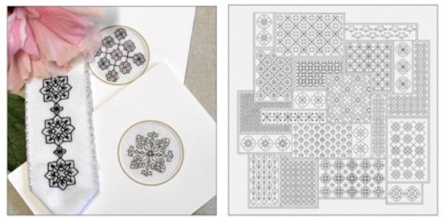 Wie auf dem Buchtitel zu sehen zeige ich kleingemusterte Füllstiche wie auch komplexe Stickmuster und einige Muster lösen sich auch auf,