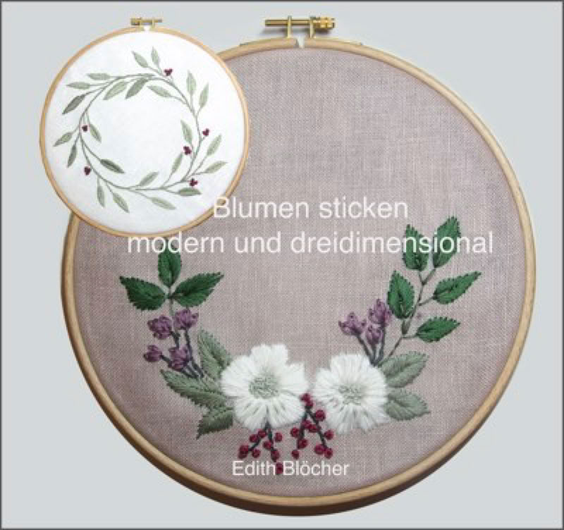 Inhalt des Buches sind die vielen Blumen vom Mustertuch rechts + ein paar gestickte Kränze.