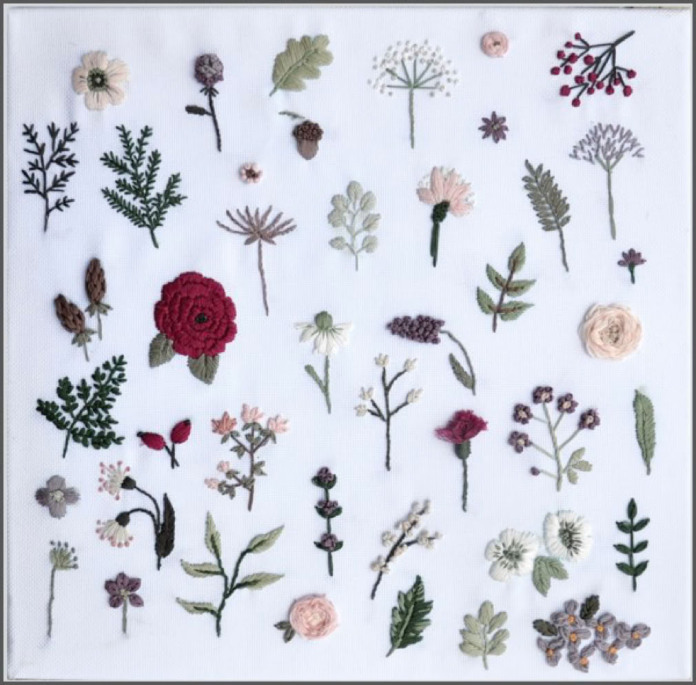 Nehmen Sie die Blumen von diesem Mustertuch und gestalten Sie Ihre eigene Stickerei.