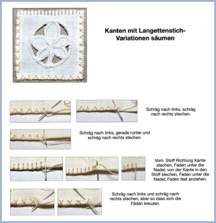 ist ein Stickstiche Lexikon mit über 80 Stickstiche und gleichzeitig ein Stickprojekt für Sie, sich auch ein textiles Stickstiche Buch zu sticken.