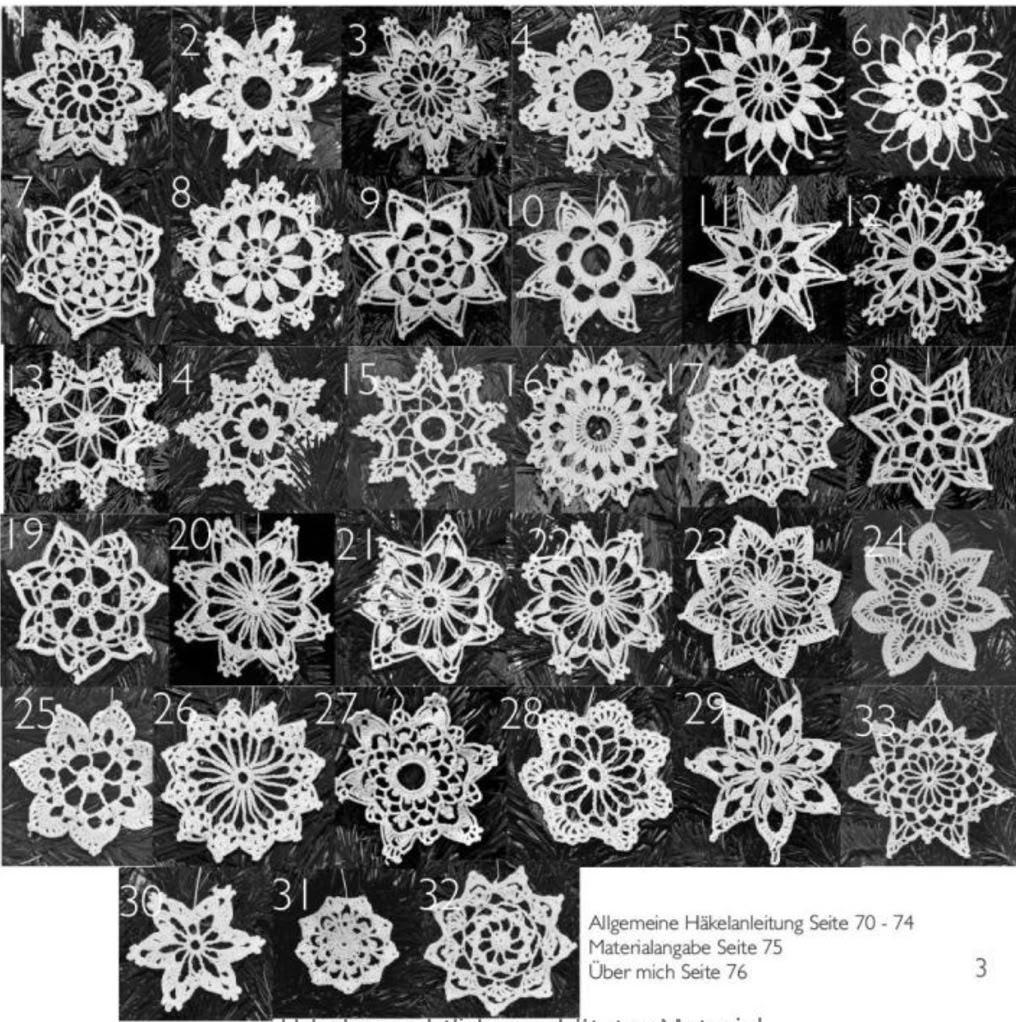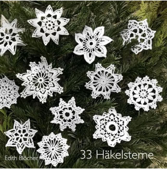 In dieser Ausgabe von 2024 habe ich ein paar Fehler der ersten Häkelschriften korrigiert und 22 weitere Sterne angefügt.