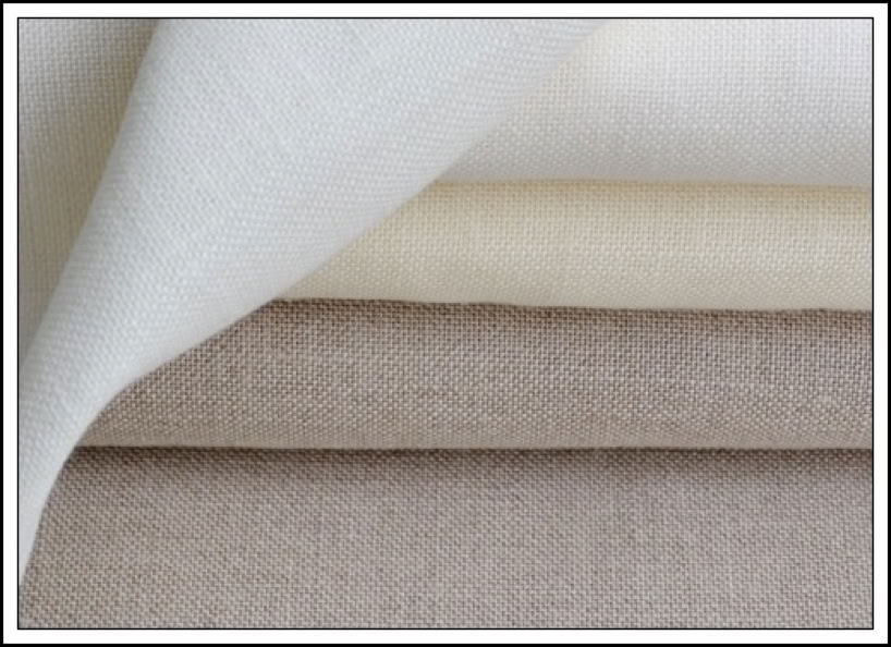100% Leinen, ca 20 Fäden/cm, 50ct. 115 cm breit, 28,60 Euro/m