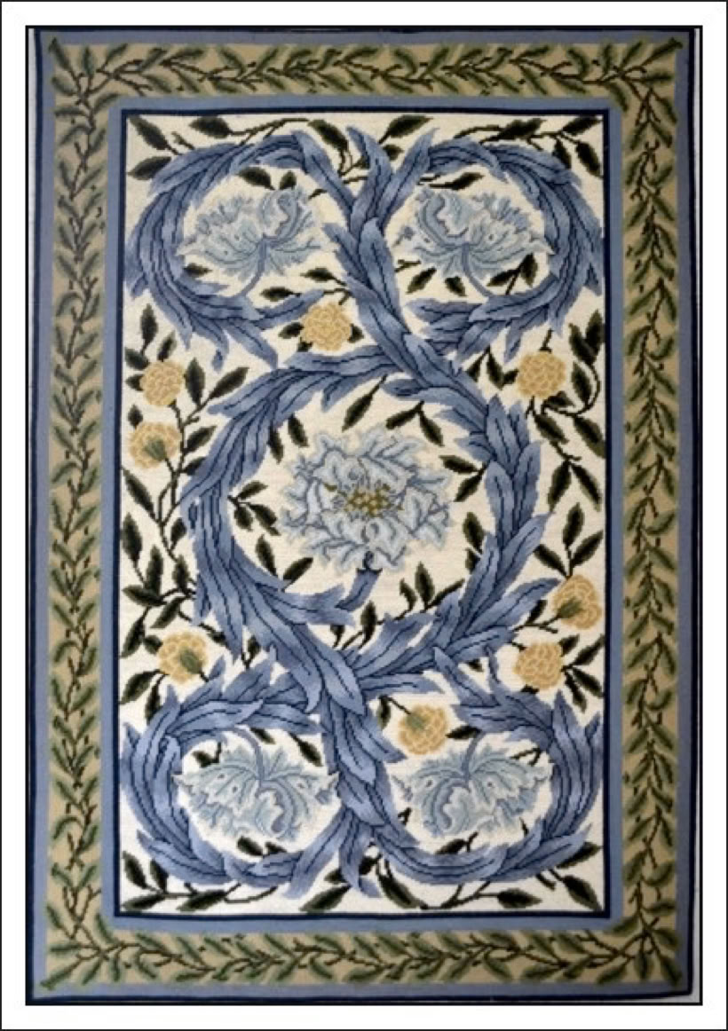 Diesen Wandbehang habe ich nach einem Zählmuster aus dem Buch William Morris Needlepoint von Beth Russell gestickt. Größe etwa 80 x 117 cm. Daneben ein Detailbild aus dem Wandbehang.