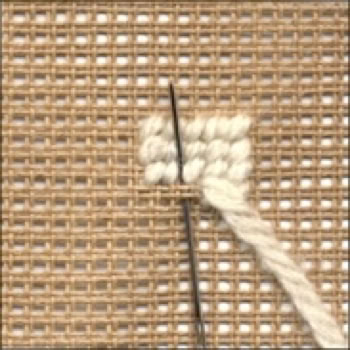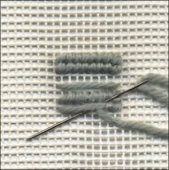 Gobelin Stickerei wird meist mit halben Kreuzstichen mit Wolle auf Stramin gestickt