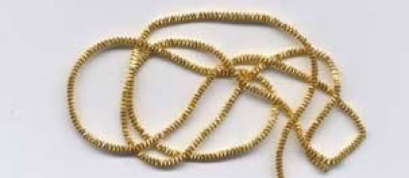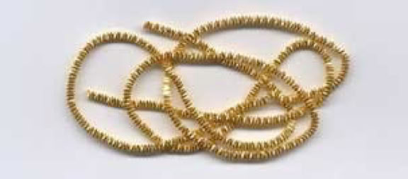 Glatte Mallröhrchen aus sehr feinem gewickeltem Draht zum Sticken in gold für die Goldstickerei