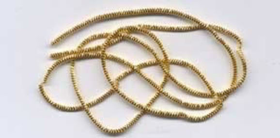 Metallröhrchen mit rauher Oberfläche aus feinem gewickeltem Draht zum Sticken in gold für die Goldstickere.