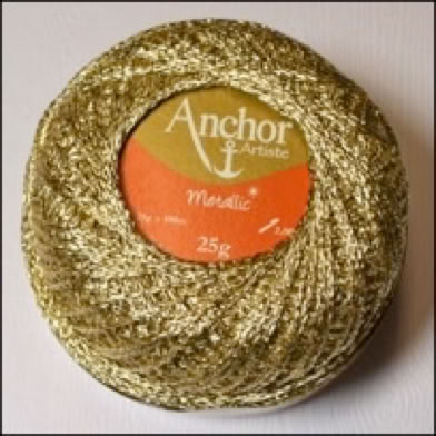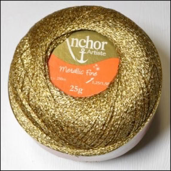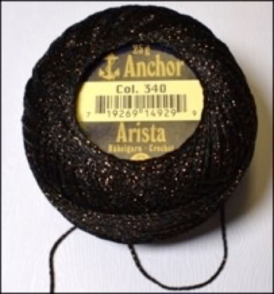 Ich habe noch eine kleinere Zahl von diesen Häkelgarn Knäuelen. In Zukunft gibt es nur noch Anchor Artiste Mercer Crochet Metallic, aber noch habe ich von der neuen Ware nichts am Lager.