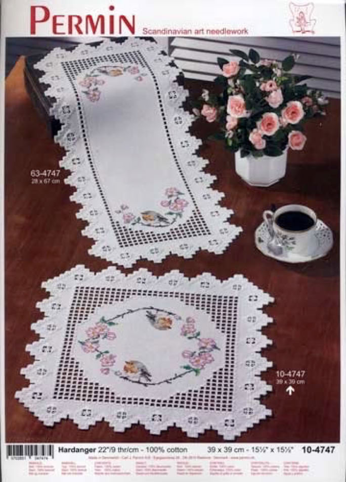 Es gibt von Permin of Copenhagen schöne Stickpackungen für Hardanger in Kombination mit Kreuzstich