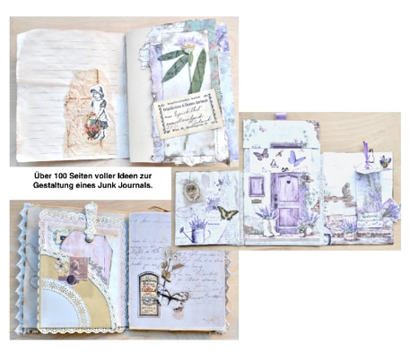 Ein Junk Journal ist ein selbst gemachtes, sehr kreativ gestaltetes Buch ohne Text, das voller Scrapbooking-Ideen steckt. Es hat viele Teile zum Aufklappen, Herausnehmen und Anschauen. Ein Junk Journal darf gerne viel benutzt und verrückt aussehen. Im englischsprachigen Raum ist es eine eigenständige Kunstform, solche Bücher zu gestalten. Im deutschsprachigen Raum ist diese Kunstform noch ziemlich unbekannt. Weil es aber so viel Spaß macht und grenzenlose Kreativität ermöglicht, habe ich mich entschlossen, ein Anleitungsbuch dafür zu erstellen.