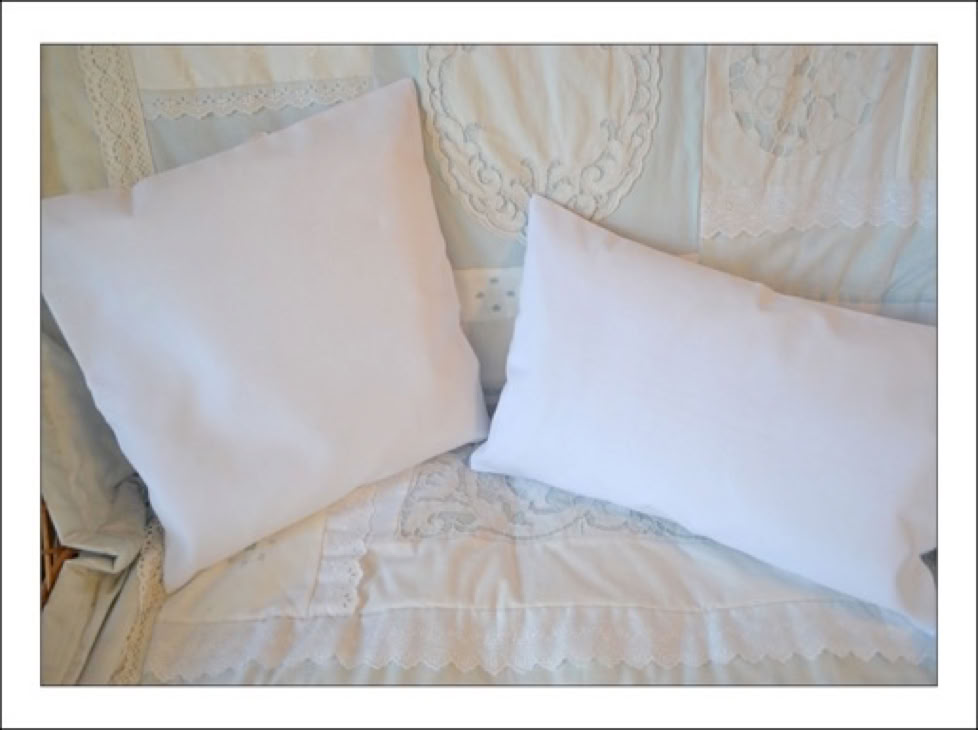 und bei den Kissen in creme, vorn und hinten Aidastoff.