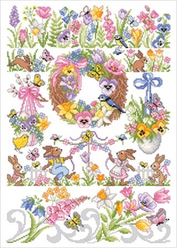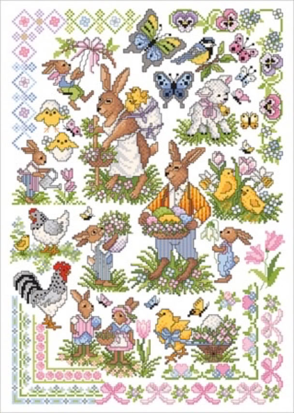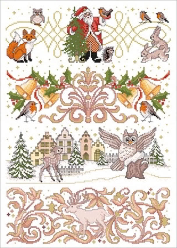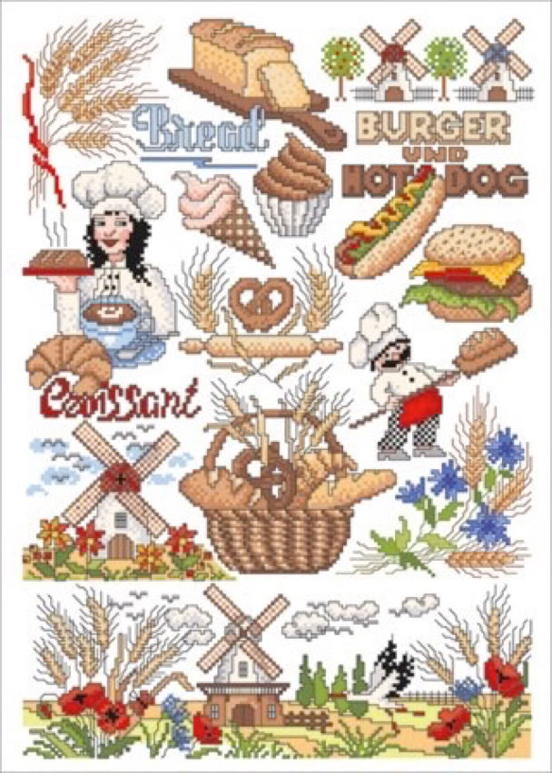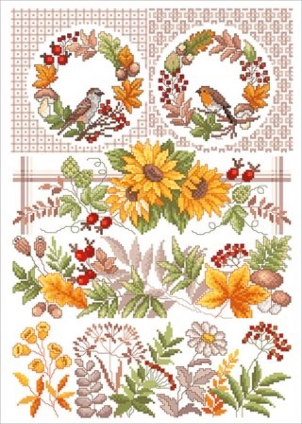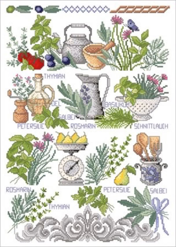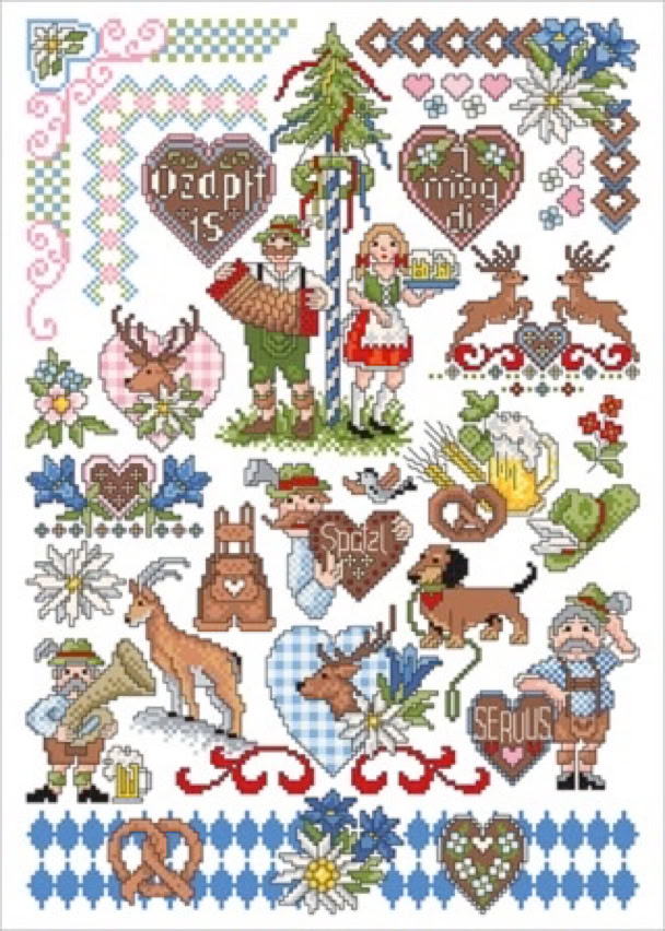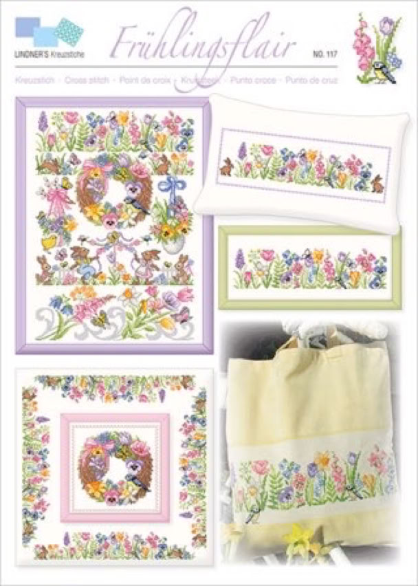 Der bekannte Kreuzstichdesigner, Herr Michael Lindner, produziert derzeit Vorlagenblätter, vorne die Titelseite mit einem Mustertuch mit allen Motiven der Vorlage und einigen Anwendungsmöglichkeiten, innen auf A3 groß die farbige Kreuzstich Stickvorlage, auf der Rückseite noch mehr Anwendungsideen und auf einem Einlegeblatt die Stickanleitung und die Garnangabe in DMC und Anchor Sticktwist.