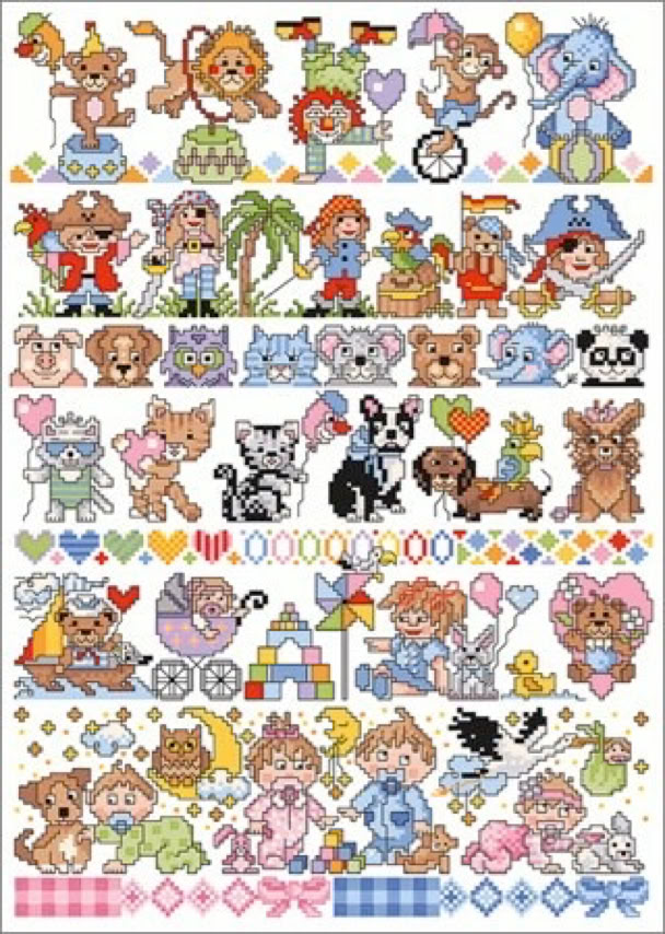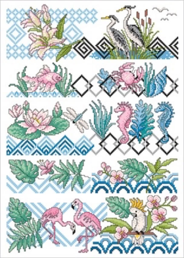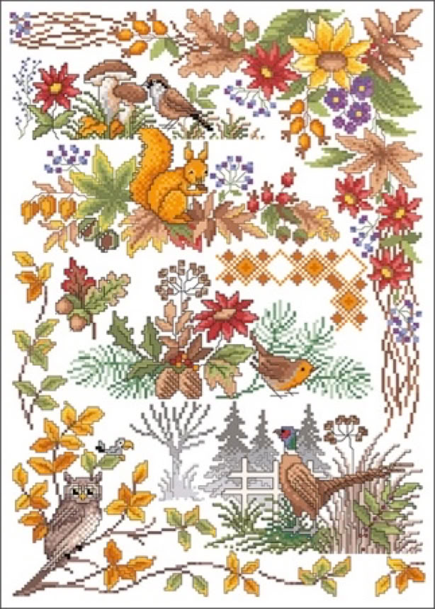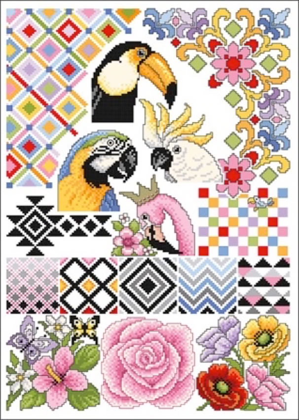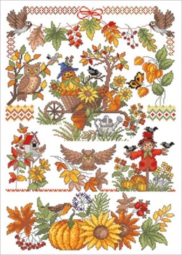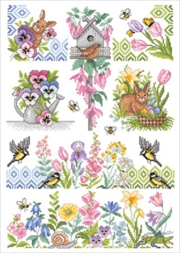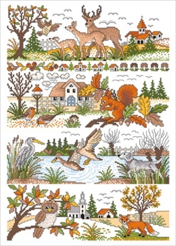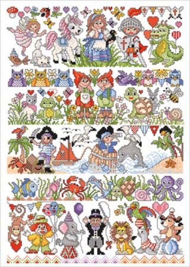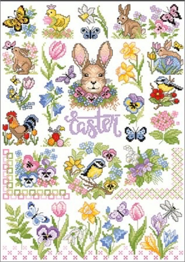 Der bekannte Kreuzstichdesigner, Herr Michael Lindner, produziert derzeit Vorlagenblätter, vorne die Titelseite mit einem Mustertuch mit allen Motiven der Vorlage und einigen Anwendungsmöglichkeiten, innen auf A3 groß die farbige Kreuzstich Stickvorlage, auf der Rückseite noch mehr Anwendungsideen und auf einem Einlegeblatt die Stickanleitung und die Garnangabe in DMC und Anchor Sticktwist.