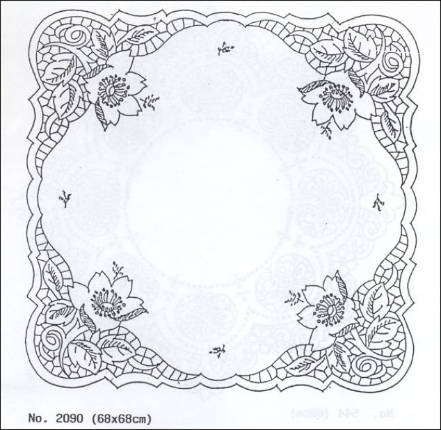 vorgezeichnete Richelieudecke mit großen Eckblüte, Design 2090
