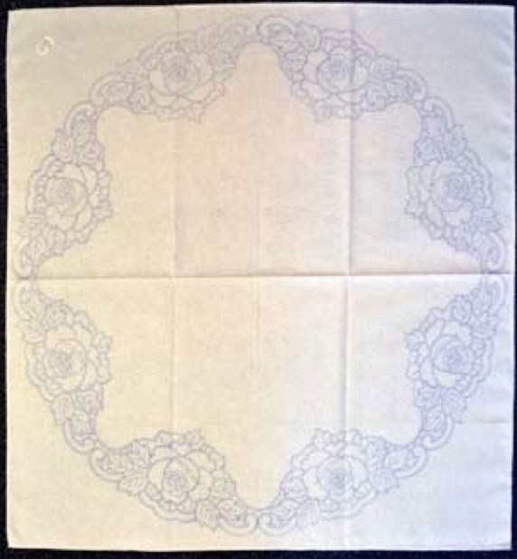 vorgezeichnete Richelieudecke rund mit Rosenmotiv
