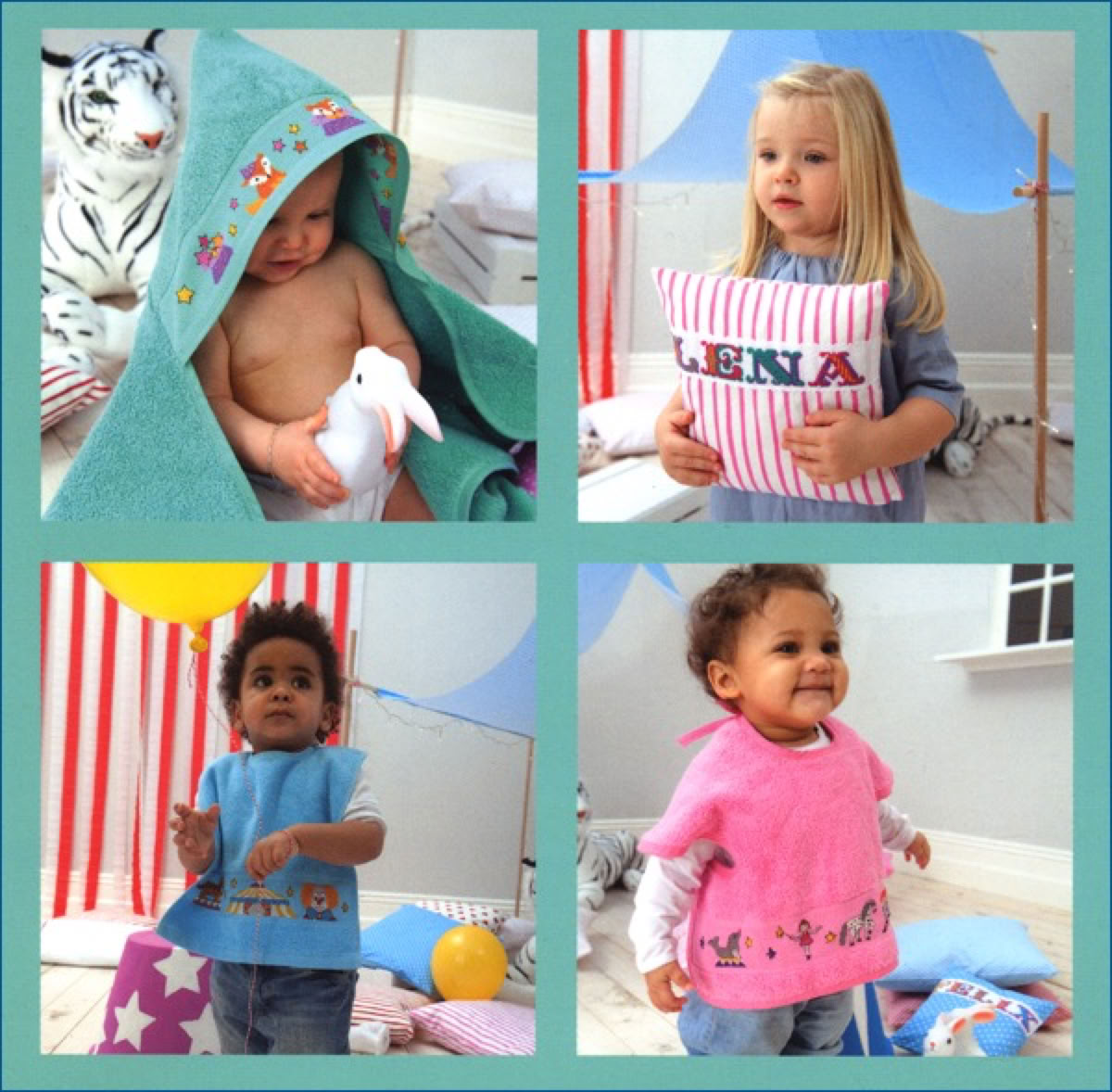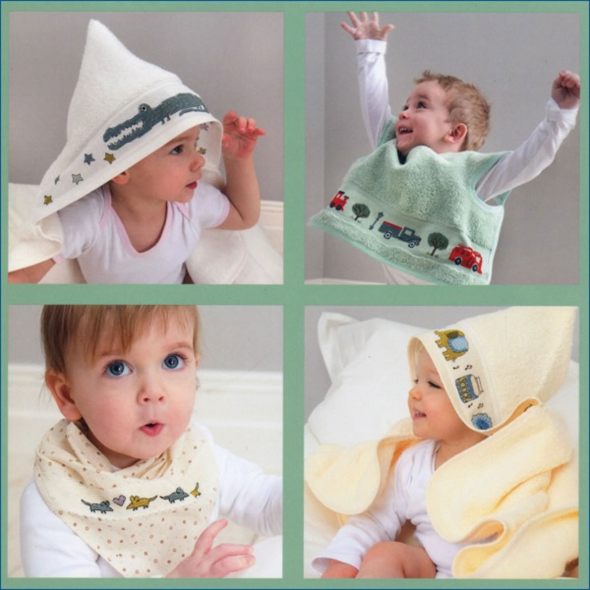 Die Motive sind auf die Baby Artikel von DMC abgestimmt, passen aber natürlich auf alles mögliche. Es ist ein französisches Heft, das sieht man daran, dass es Einzelmotive sind, keine Bildkombinationen.