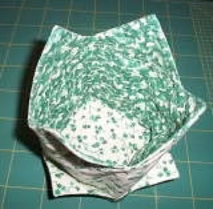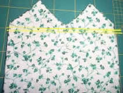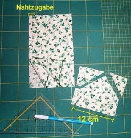 Auf den vierfach gelegten 12 cm breiten Teil des Stoffes ein Dreieck zeichnen und ausschneiden. (Abb. rechts)