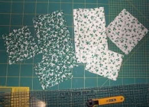 und aus dem Rest je Stoff ein Quadrat von ca. 13x13 cm zuschneiden oder auch zusammensetzen