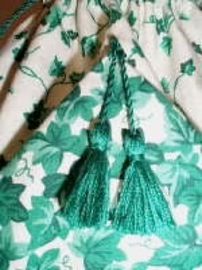Diese kleinen Quasten an den kurzen Kordeln werden jeweils an die Spitzen der niederen Zacken und an den Beutel in Höhe der niederen Zackenspitzen genäht und miteinander verknotet.