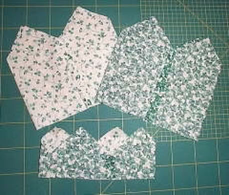 Damit die Zacken nachher gut aussehen, die Nahtzugaben der Spitzen abschneiden und in den Tälern die Nahtzugaben zur Naht hin einschneiden. Die Teile wenden und gut ausbügeln. Jetzt muss man entscheiden, welchen Stoff man außen und welchen man innen haben möchte.