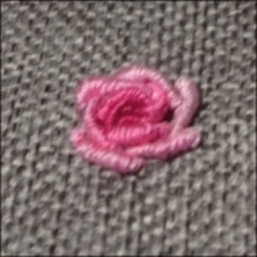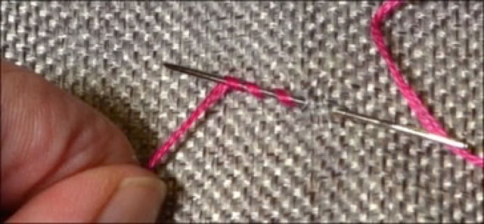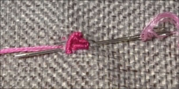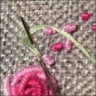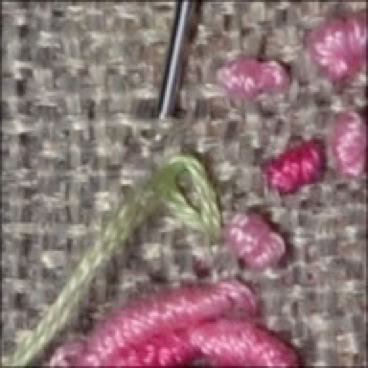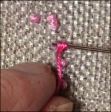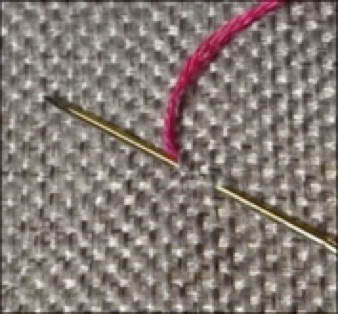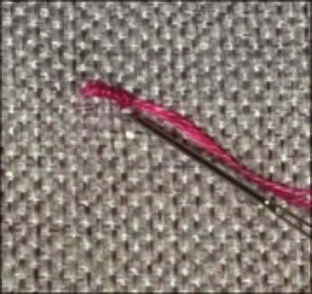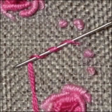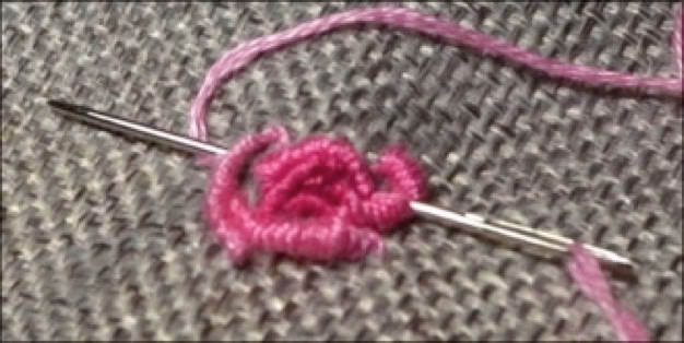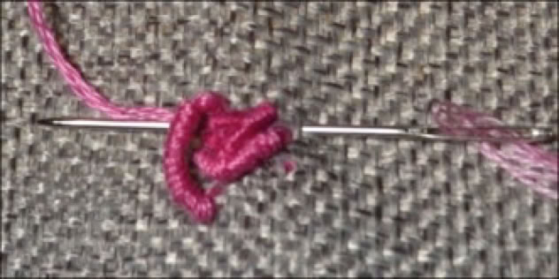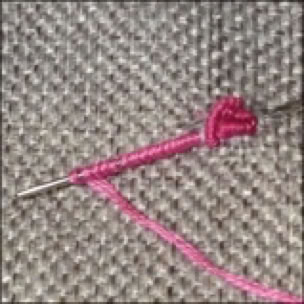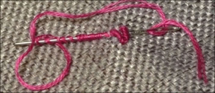 Den Faden 2 oder 3 mal Richtung Nadelspitze wickeln und wieder nach unten stechen.