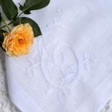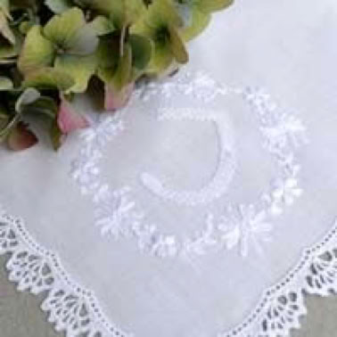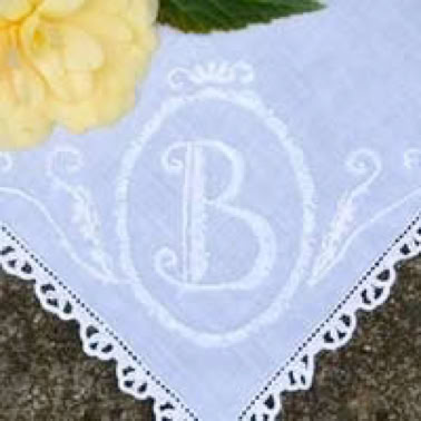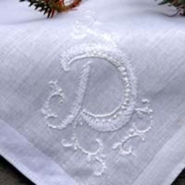 Natürlich verwende ich für die Monogramm Stickerei Taschentücher mit Lochrand aber ohne maschinell gesticktes Stickmotiv.