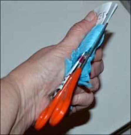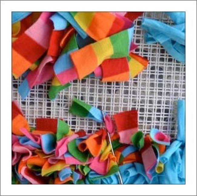 Teppich knüpfen aus Noodle Stoffstreifen, allerdings müssen sie erst noch geschnitten werden.