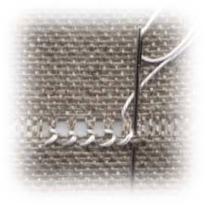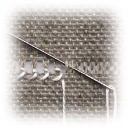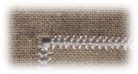 Der Hohlsaumstich wird von rechts nach links gestickt und besteht aus 2 Stichen.