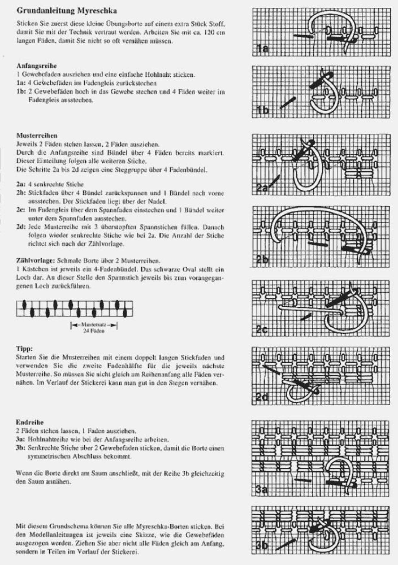gearbeitet wird grundsätzlich in Reihen von rechts nach links Zwischen zwei Begrenzungsreihen liegen unterschiedlich breite Muster aus Lochornamenten und stabilen Stegen.