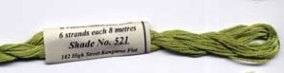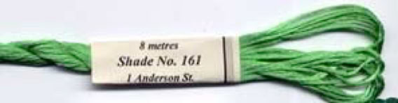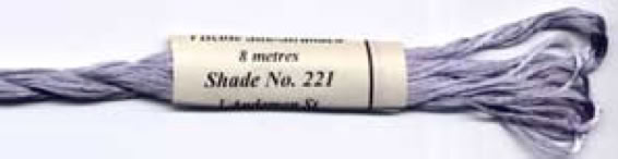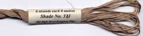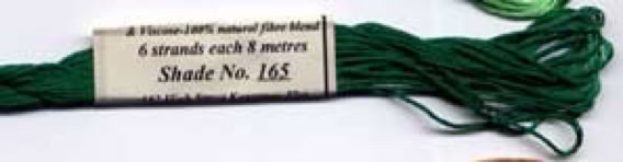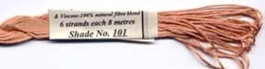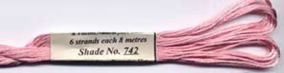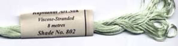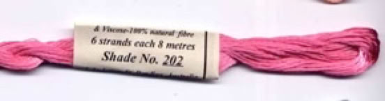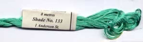 6fädiges hochglänzendes Stickgarn aus diverse Faserarten so weit ich weiß, vor allem aus Viskose und Seide, 8m pro Strang - wirkt etwas feiner als das übliche Sticktwist