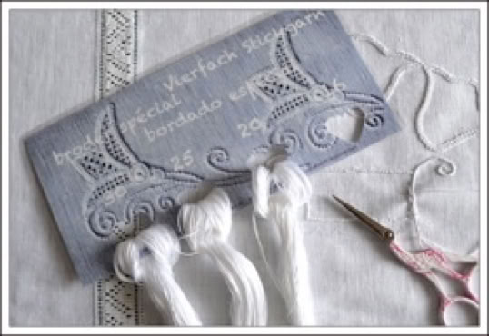 Eine laminierte Karte ca 21 x 10,5cm mit herzförmige Löcher. Zuerst wollte ich das Vierfach Stickgarn auf eine Karte wickeln, aber es hat sich immer wieder verknotet. Dann habe ich es mit einer Lochkarte probiert und dazu den Strang aufgeschnitten. Und so mit einer Lochkarte ist die Aufbewahrung praktisch und gut. Jede Stärke in einem Loch, ich habe sofort den richtigen Faden in der Hand und nichts verknotet sich.
