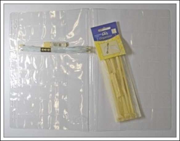 auffaltbar für 16 Spindeln; allg. Lochung. So können die Garne in einem Ordner aufbewahrt werden.