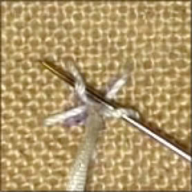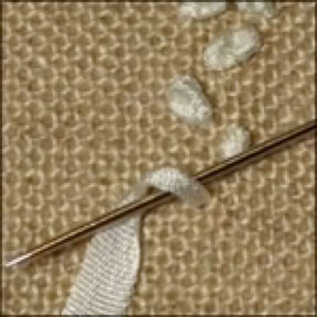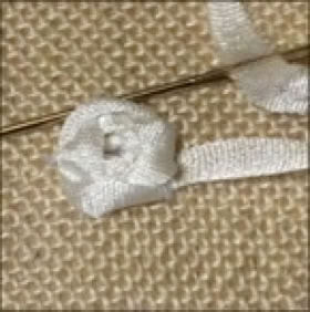 Seidenbändchen 1 oder 2 mal Richtung Nadelsputze um die Nadel wickeln und nach unten stechen.