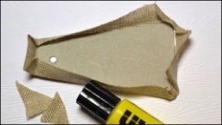Um eine schöne Blättchenform zu bekommen, sticht man an der Spitze des Blättchens durch das Bändchen.