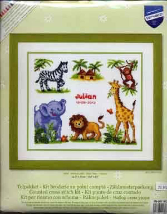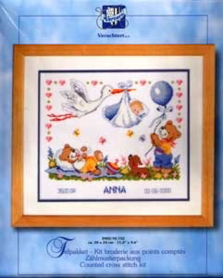 komplettte Zählmusterpackungen zur Geburt für Kreuzstich meist von Vervaco mit komplettem ABC und Zahlen für die individuellen Daten,