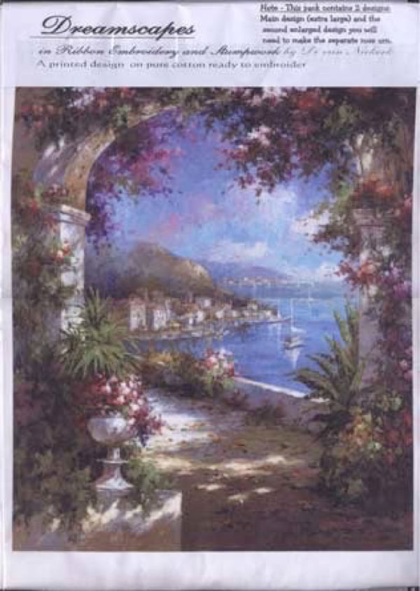 Stoff bedruckt mit Motiv, ohne Stickanleitung, da dieses Motiv im Buch "Dreamscapes" sehr ausführlich behandelt wird, wobei es das Buch inzwischen leider nicht mehr gibt. Auflage abverkauft