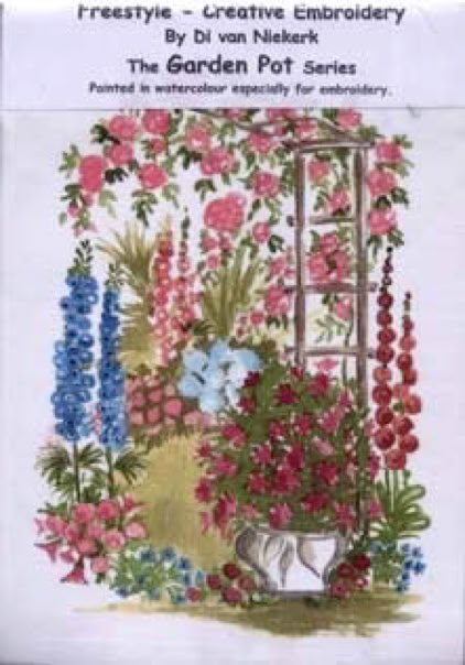 In der Packung sind 2 Designs: das Gesamtbild + die untere Hälfte zusätzlich, damit man das Gefäß mit den Rosen im Vordergrund ausschneiden, applizieren und so plastisch gestalten kann.