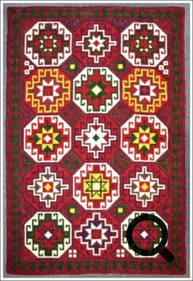 Die beiden Teppiche hier sind in Kreuzstich gestickt nach Zählmuster