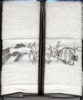 Weißes Rico Frottee Gästetuch mit breitem Streifen unten, den man frei besticken und gestalten kann