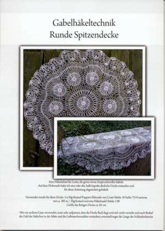 Auf 4 Seiten ist die Häkelanleitung dazu, einschließlich der Grundanleitung fürs Gabelhäkeln