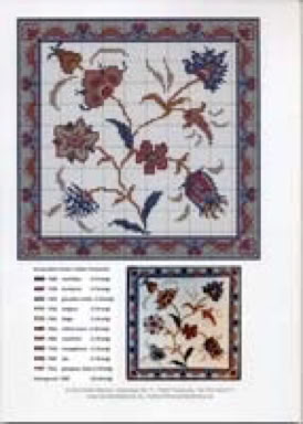 Mein Modell ist mit Perlgarn 8 auf 8 fädiges Leinen von Weddigen gestickt und auf einen Keilrahmen (40x40cm) gespannt.