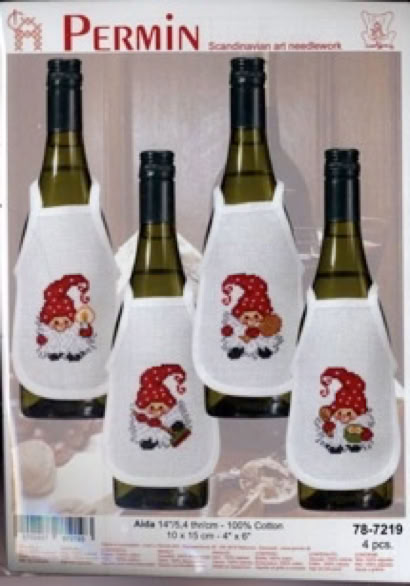 Komplette Stickpackungen mit fertig genähten Flaschenschürzen, Stickgarn und Vorlage