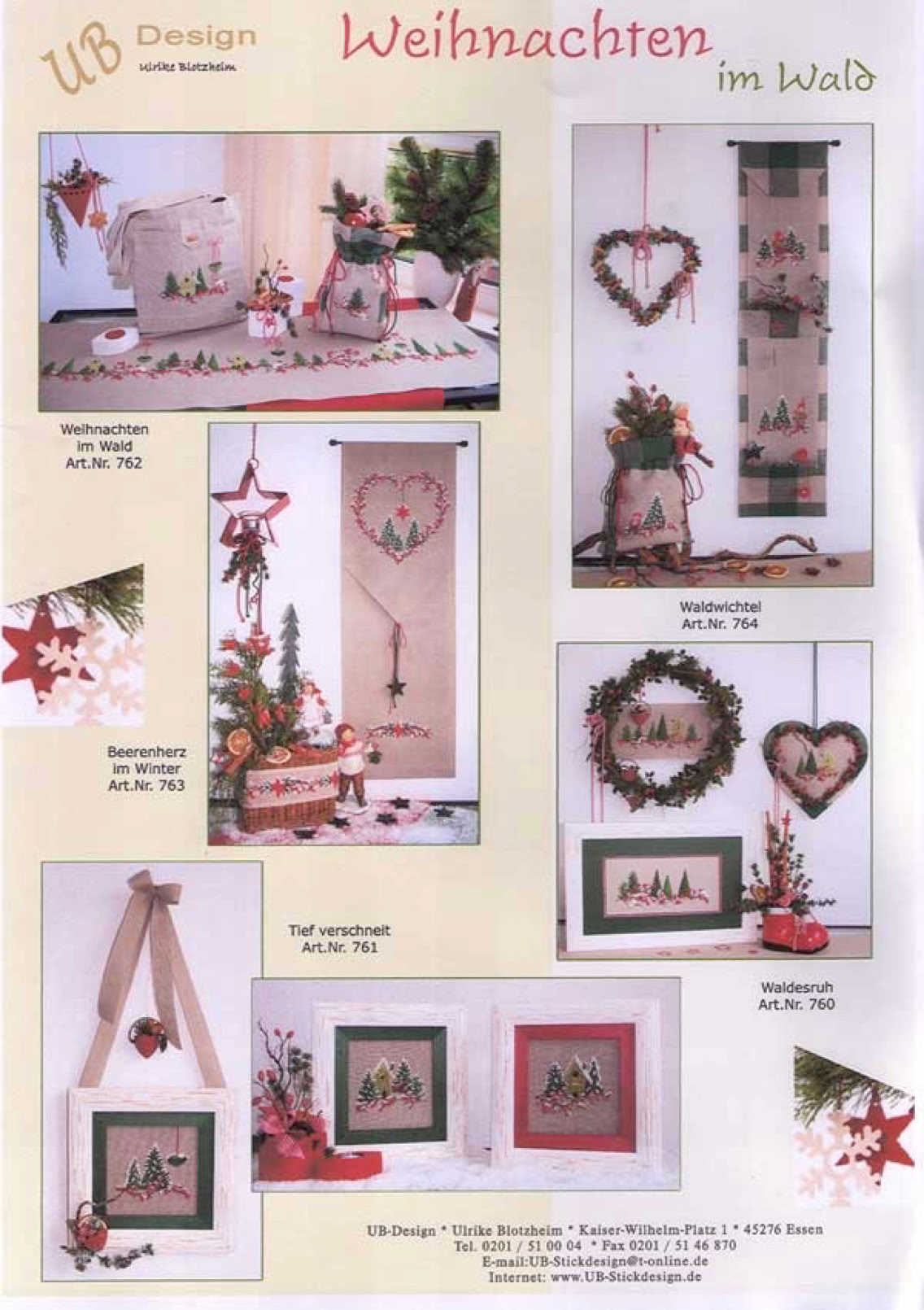 16 Farben + Goldgarn; Motivgößen: Säckchen 44x45 Stiche,Tasche 83x52 Stiche, Tischband 550x53