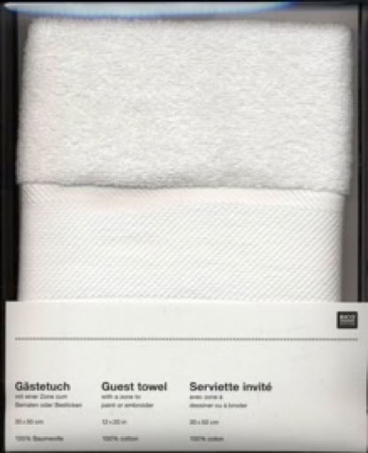 Weißes Rico Frottee Gästetuch mit breitem Streifen unten, den man frei besticken und gestalten kann